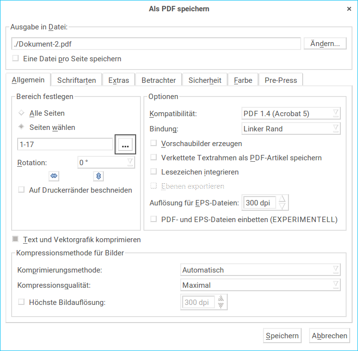 Beim Sichern habe ich „Alle Seiten“ gewählt.