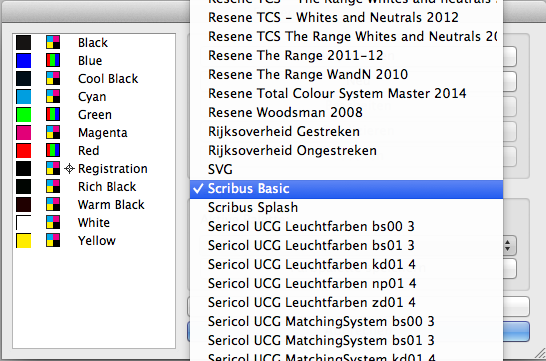 scribus verfügt von haus aus über rund 200 vordefinierte farbpaletten.