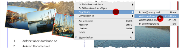 • Per Rechtsklick auf ein Bild kannst du die Reihenfolge der Bilder steuern.