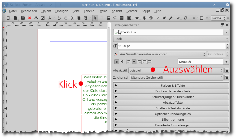 na, vermutlich hast du sie dem entsprechenden text noch nicht zugewiesen.Sarkast hat geschrieben: Mi 22. Dez 2021, 21:05…Jetzt habe ich Absatzvorlagen eingerichtet…