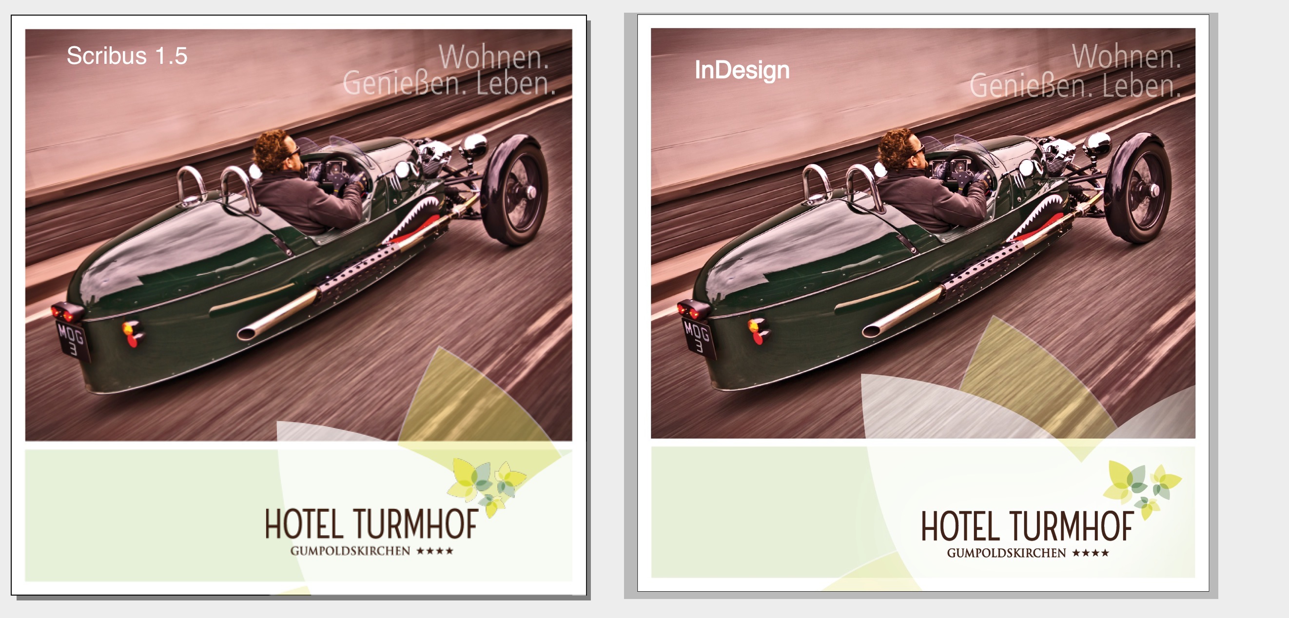 - PDFs unbekannten Farbmodells (z.B. aus Textverarbeitungsprogrammen) müssen in Scribus 1.4 eingebettet (nicht gerastert!) werden: Mit Scribus 1.5 könnte ein PDF bekannten Farbmodells erzeugt, außerdem könnte beispielsweise schwarze Flächen in CMYK definiert werden.