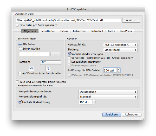 Ich kenne Scribus bishe rnur bedingt, ich habe mir Scribus 1.4.4 heruntergeladen und eine ähnliche Diskussion gab es schon einmal:Purpur hat geschrieben:Vor allem ging ich davon aus, dass ein DTP-Programm von diesem Kaliber ein problemlos druckbares PDF erzeugt - auch ohne eine einschlägige Ausbildung im Printbereich zu besitzen (offensichtlich ein Fehler)