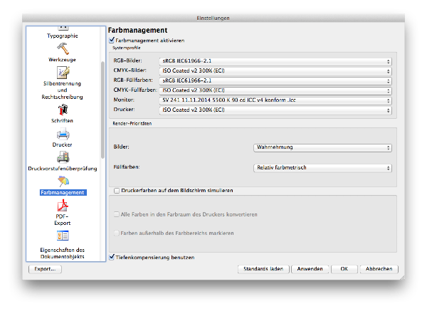 1. wo kann ich in den Voreinstellungen unter »Farbmanagement« ICC-Profile nachträglich installieren (Mac) und somit andere ICC-Profile anwählen wie z.B. ISO Coated v2 300%
