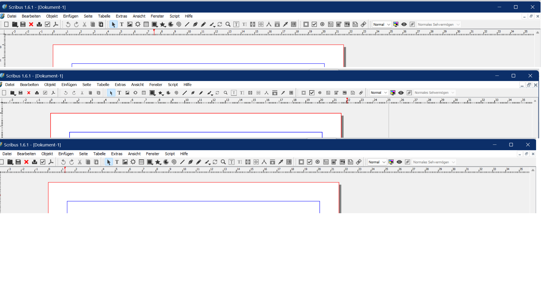 ich bin neu hier, arbeite schon länger mit Scribus 1.4.x und habe heute auf die neueste Version umgestellt und gleich auf einen neuen Windows 11-Rechner mit 32-Zoll-Monitor neu installiert und bin hilflos.