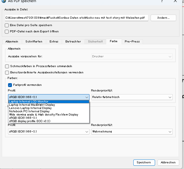 In "pre-press" steht tatsächlich das von mir gewählte Farbprofil. Wäre ja nur zu schön, wenn es auch in diesem Format gespeichert werden würde. Kann man das Profil nach dem Exportieren irgendwie überprüfen?
