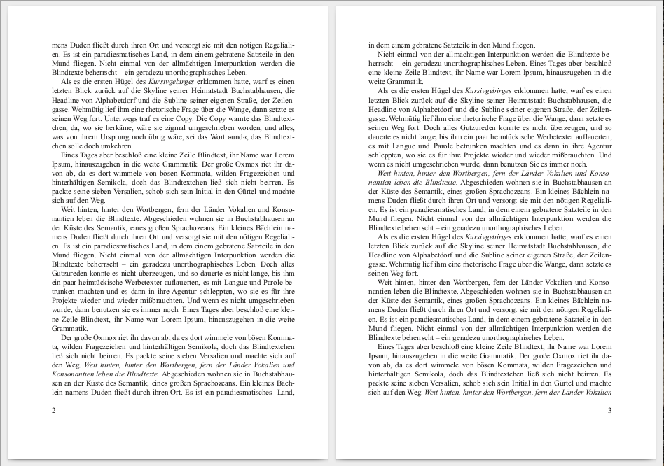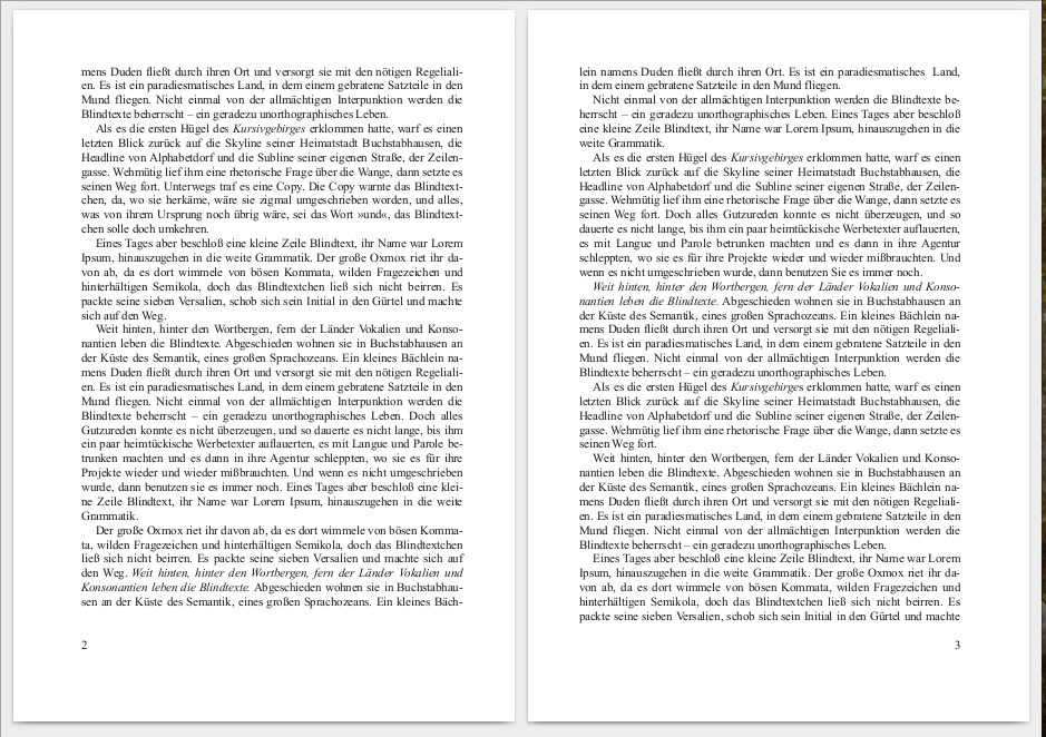 Der Durchschuss ist auf der linken Seite 0,3 Punkt größer. Vom Grauwert her ist das in Ordnung. Ich würde das, wie gesagt, dennoch nur als letztes Mittel in Betracht ziehen, wenn keine bessere Möglichkeit besteht.