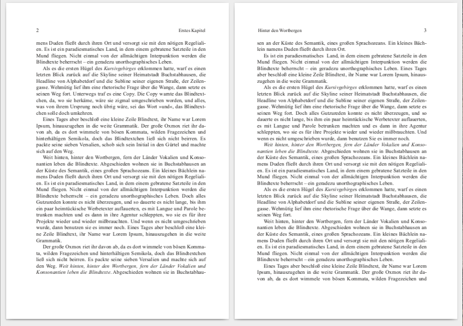 Ein eher akzeptables Resultat erhält man mit diesem Verfahren dann, wenn die Seiten einen Kolumnentitel oben haben: