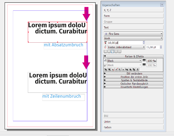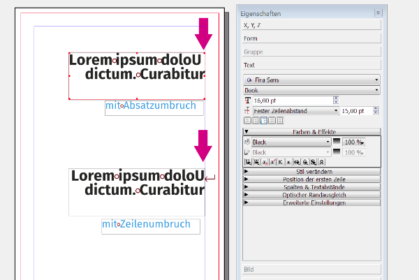 Bei einem Zeilenumbruch geht alles seinen gang Rahmenbündiger Umbruch und auch ein Kontrollzeichen wird erstellt.