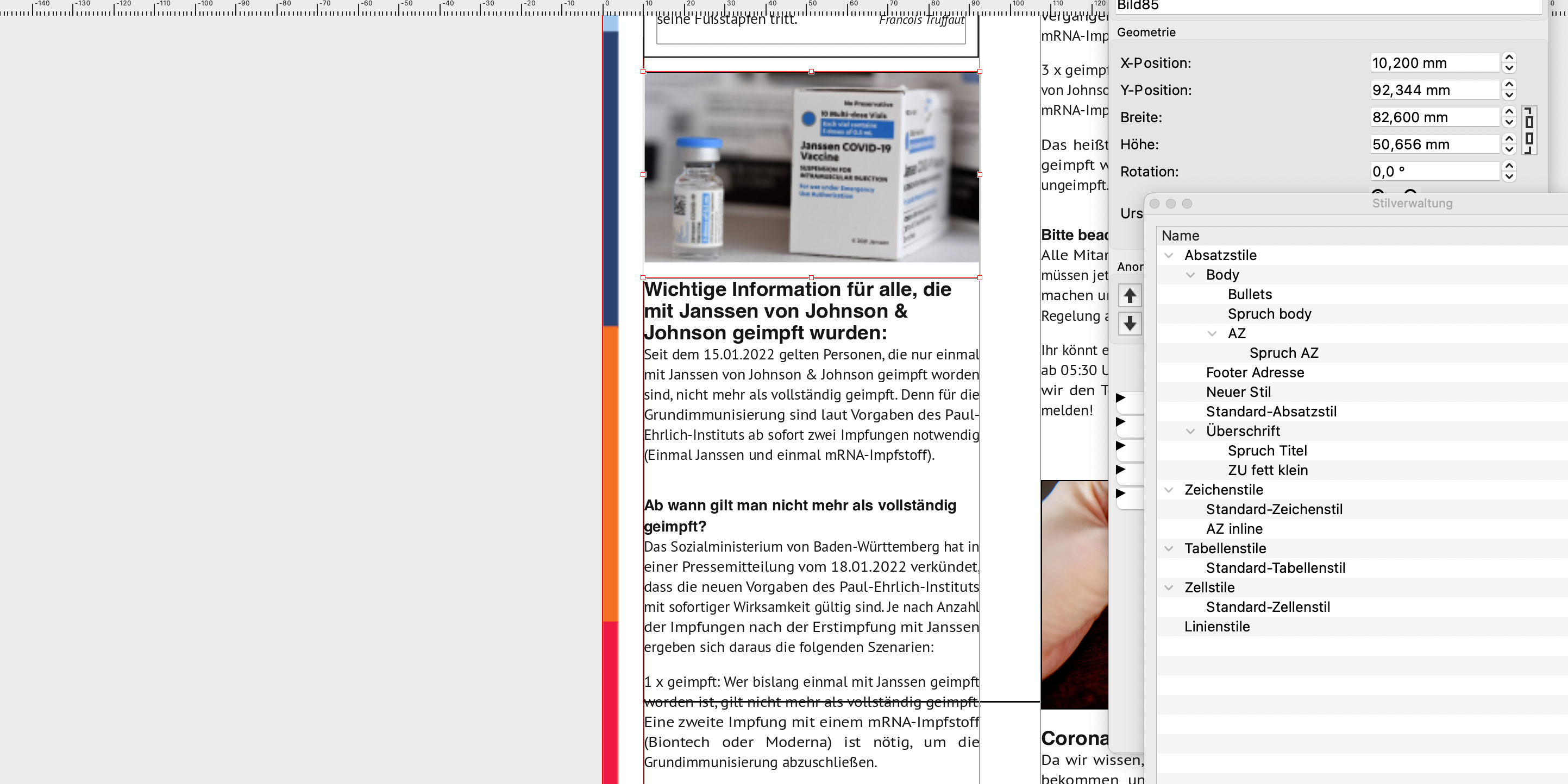 ich bin mit Umstieg auf ein 14"-MacBook/Monterey nun auch endgültig weg von den letzten beiden Projekten in QuarkXPress und arbeite mich nun in Scribus (1.5.6.1) ein. Einiges fällt mir – neben den grundlegenden Konzepten – noch recht schwer, vor allem kämpfe ich im Alltag mit der Oberfläche und der Bedienung der Fenster. Dazu habe ich einige Fragen (hoffe es ist ok, die zusammenzufassen):