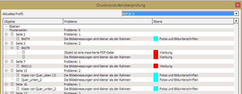 Von der Druckerei habe ich die Vorgabe, das Dokument mit pdf/X-1a oder X-3 zu erstellen. Ich habe bei der Druckvorstufenüberprüfung mit pdf/X-3 folgende unten angehängte Fehlermeldung.