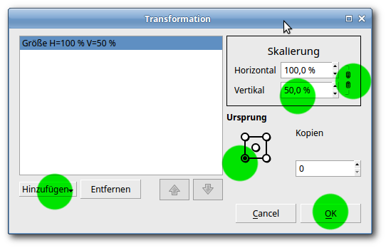 • Wähle als Ursprung für die Skalierung den Punkt unten links