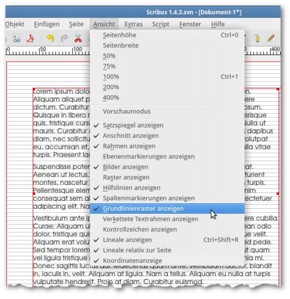 In Scribus gibt es die Möglichkeit ein Grundlinienraster einzustellen.