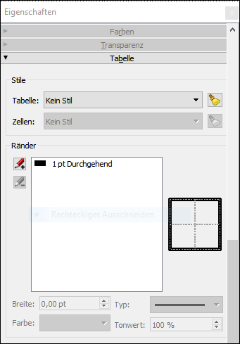 Okay, ich hab mal ein Screenshot des Eigenschaftendialogs angehängt. Was bedeuten z.B. die beiden Icons unter "Ränder" und wie funktioneren die? Sorry, wenn ich mein Problem nicht besser formulieren kann. Im Grunde weiß ich einfach nur nicht, wie ich für die gesamte Tabelle und für einzelne Zellen die Umrandung entfernen kann.