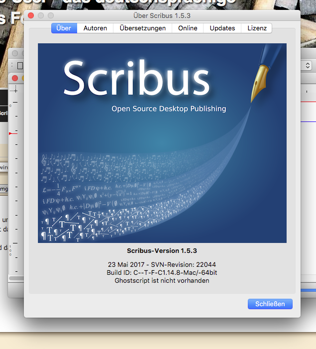 Vielleicht ist ja alles schon bestens, nur es erscheint nicht in "Über Scribus"?
