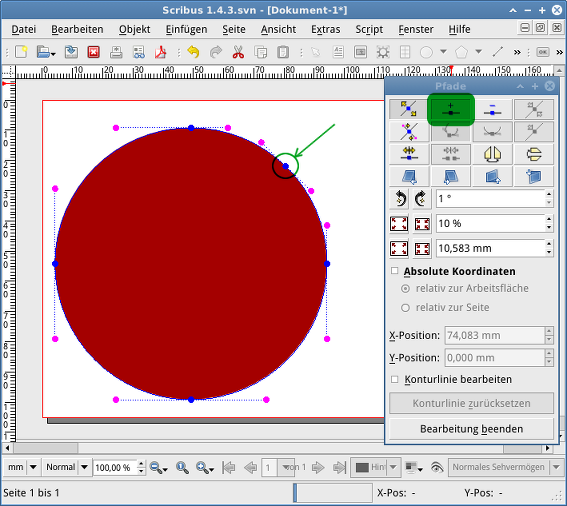 in meine vergangenheit habe ich viel mit den knoten in scribus "gekämpft" und mitlerweile vermeide ich (fast) jede bearbeitung der knoten mit der maus.