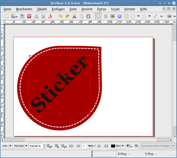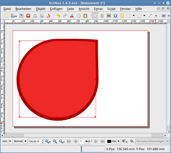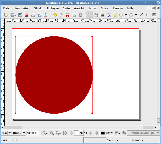 Ziehe einen gleichmäßigen Kreis auf. Prüfe im Eigenschaftsfenster XYZ, das Höhe und Breite gleich sind. Fülle den Kreis mit einer Farbe. Mein Kreis hat eine Höhe und Breite von 90 mm.