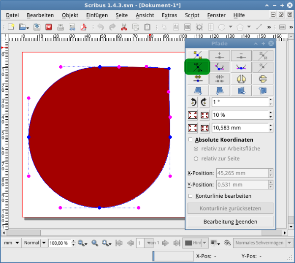 Aktiviere die Schaltfläche „Punkte verschieben“. Ziehe den neuen Kontrollpunkt aus dem Kreis heraus.