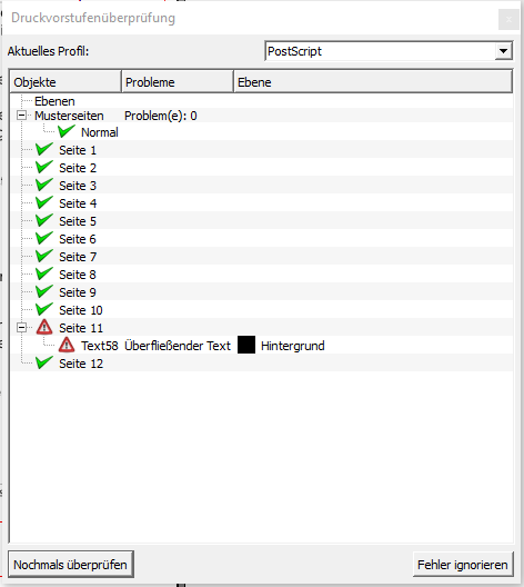 PDF-Ausgabe Fehlermeldung bei Prüfung