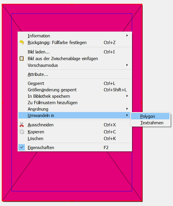 Um die Fehlermeldung zu vermeiden, verwende eine Form (Polygon). Der Einfachheit halber kannst du den Bildrahmen kurzerhand per Rechtsklick in ein Polygon umwandeln: [Umwandeln in]→ [Polygon]: