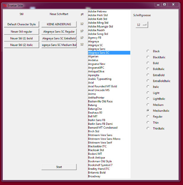 Nachdem ich heute Morgen eine Reihe von Schriften ausprobiert habe, war ich doch von der ständigen Wechselei genervt. Deswegen habe ich jetzt den Rest des Tages mit dem Erstellen eines Skriptes verbracht, das die Aufgabe für mich erledigt. Ob die Stunden der Programmiererei jetzt tatsächlich eine Zeitersparnis waren - tja, ich weiß nicht.