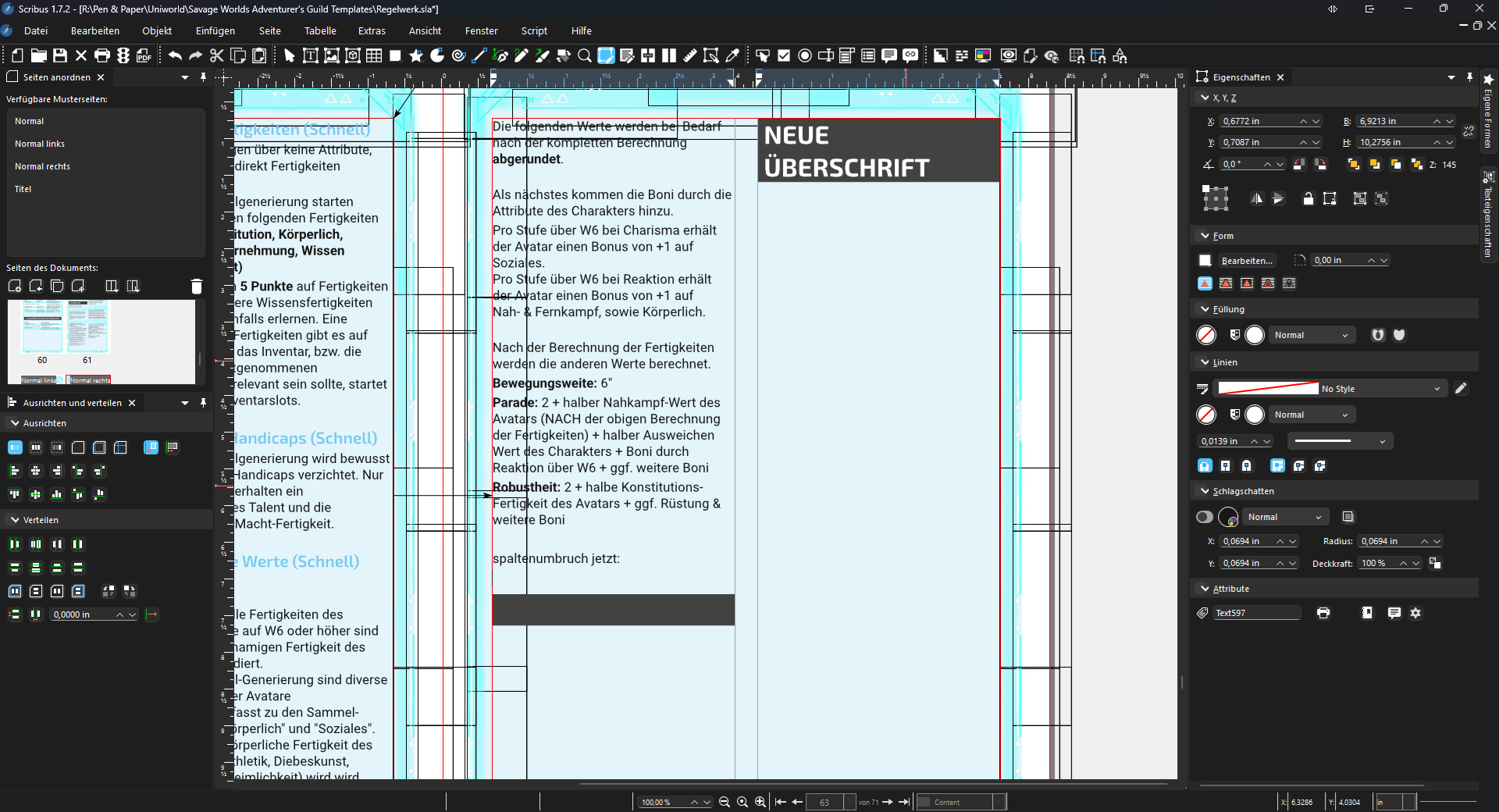 Ich nutze verkettete Textrahmen.