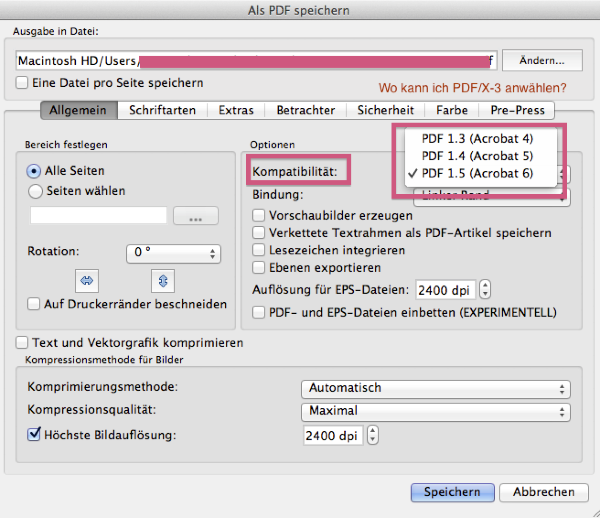 Hier im Link ist es ja möglich ein PDF/X-3 anzuwählen, bei mir fehlt leider dieser Eintrag wie im Screenshot zu sehen ist.