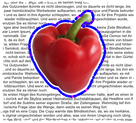 Der Text liegt nun sehr eng an der Paprika. Möchtest du einen Abstand zwischen Text und Paprika vergrößern, müssen wir die Konturlinie bearbeiten.