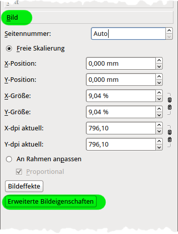 Öffne nun dein Eigenschaften Fenster - Register Bild.