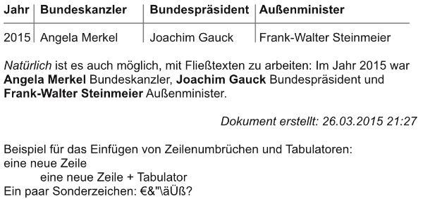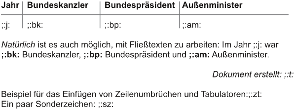 - Stile können auch angewendet sein, da nur der Text ersetzt wird (wichtig: den kompletten Platzhalter mit einem Stil formatieren, sonst funktioniert das Ersetzen nicht)